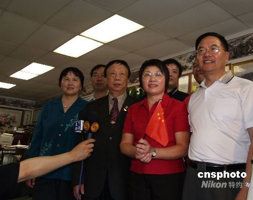 當地時間9月24日,中國神舟七號載人飛船發射圓滿成功,極大地鼓舞了海外華人的愛國熱情。美國南加州華人聯合總會會長程遠、亞裔聯盟主席江志成、美國浙江經貿聯合會榮譽會長李社潮等僑領聚集在洛杉磯,熱烈慶祝祖國航天事業取得偉大成就。中新社發 盧威 攝