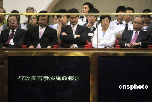 十月十五日,香港行政長官曾蔭權,在立法會發表二零零八至零九年施政報告。特首夫人曾鮑笑薇及多位行政會議成員出席旁聽。中新社發 譚達明 攝