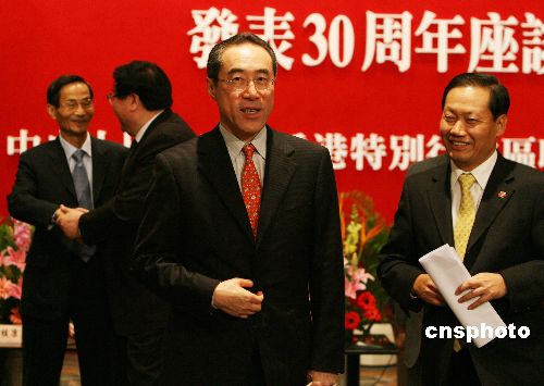 圖為中聯辦副主任彭清華(右一)、香港特區政務司司長唐英年等與會。