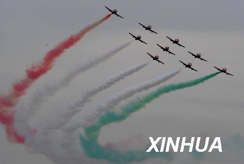 印度空軍“陽光”表演隊(duì)在珠海航展上進(jìn)行表演。