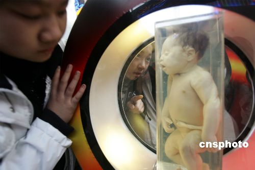 十一月二十六日,鄭州市一所中學把性教育課搬到該市科技館內上,使平時在生理課上學生覺得難為情的授課內容,通過標本等接受性教育。中新社發 慎重 攝