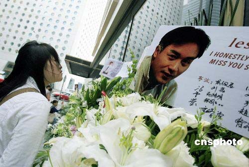 香港連日舉行多場活動紀念張國榮“哥哥”去世五周年。三月三十一日,香港細雨紛紛,文華東方酒店門前堆滿紀念“哥哥”張國榮的鮮花,花之艷、情之切,寄托無數(shù)人對這位才華橫溢藝術(shù)家的思念。中新社發(fā) 王麗南 攝