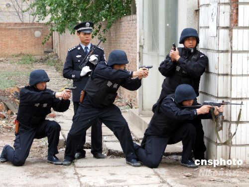 4月11日,河南濮陽市在一家廢棄的化工廠內(nèi)舉行了代號為“龍鄉(xiāng)衛(wèi)士一號”的反恐怖實戰(zhàn)演練。實戰(zhàn)演練演示了處置危險化學(xué)品爆炸火災(zāi)、緝拿恐怖分子等反恐行動。演練共有200余名公安干警、駐軍部隊、武警和消防官兵,以及衛(wèi)生、環(huán)保、電力等人員參加。通過實戰(zhàn)演練的舉行,展現(xiàn)了軍警民協(xié)同作戰(zhàn),處置恐怖襲擊事件和重大突發(fā)事件的能力和水平。中新社發(fā) 劉敬寬 攝