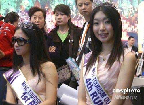 四月十一日上午,二00八年中國國內(nèi)旅游交易會在河南省鄭州市開幕,來自海內(nèi)外的十萬余客商與會。參展商各展“絕活”,“古文化”、“秀美山水”等紛紛亮相,將旅交會裝扮得亮麗非凡,吸引海內(nèi)外眾多媒體。圖為二00八國際旅游小姐亮相旅交會。中新社發(fā) 史寶銀 攝