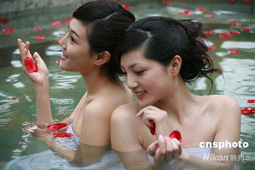 4月13日,安徽黃山醉溫泉湯池舉行模特秀。歷經(jīng)兩年勘測(cè)和開發(fā)后,安徽黃山醉溫泉已全面建成并投入使用。當(dāng)日,花瓣錦簇,香氣四溢,男女模特在44.4度的溫泉戲水,“秀”出風(fēng)情萬(wàn)種、人與自然和諧共存的美好景象。中新社發(fā) 方也廣德 攝