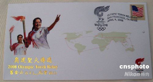 圖:華人設(shè)計師魏進發(fā)設(shè)計圣火傳遞舊金山首日封(2)