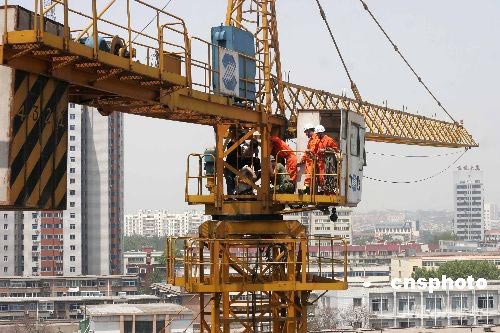 5月6日,洛陽市消防隊員在30多米高塔吊頂營救輕生男子。當日,在河南洛陽市某建筑工地發生驚魂一幕,一名男青年因對父親在建筑工地猝死賠償不滿而爬上30多米高的塔吊頂端,身懸空中,意欲輕生。生死攸關之時,消防官兵經過兩個多小時的巧妙周旋和艱難營救,男青年被安全救回地面。 中新社發 張曉理 攝
