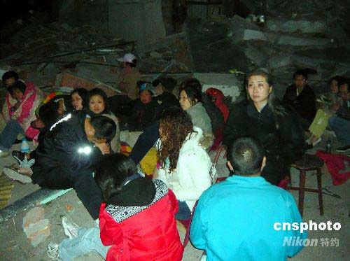 家長焦急等待被埋學生消息。中新社發 郭晉嘉 攝
