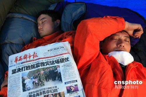 組圖:消防搜救隊趁搜救間隙休息(5)