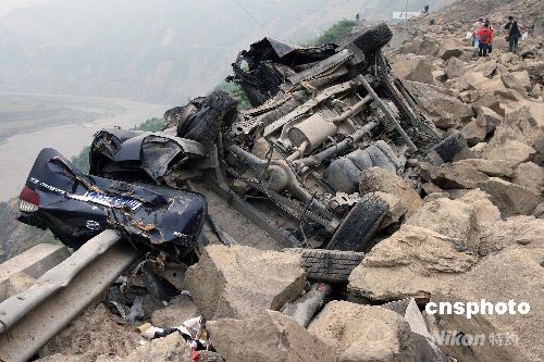圖:記者采訪車被山體塌方砸毀