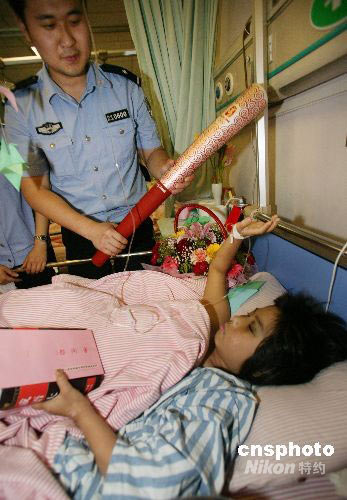 圖:奧運火炬來到災(zāi)區(qū)孩子身邊(2)