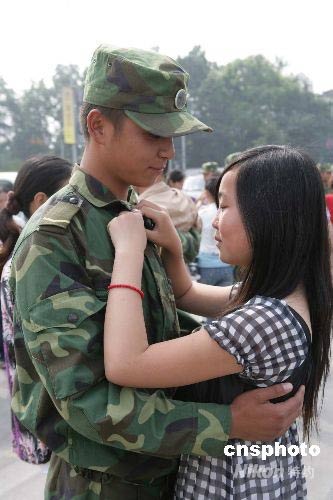 地爆連戰士孫遠剛和女友短暫團聚。中新社發 史成軍 攝