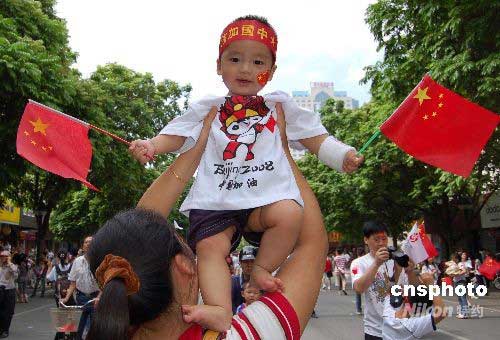 6月7日,北京奧運火炬在廣西南寧傳遞,當地民眾熱情似火喜迎圣火。中新社發 劉萬強 攝