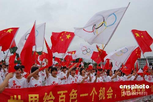 6月8日上午,奧運(yùn)圣火在革命老區(qū)廣西百色市平果縣傳遞,當(dāng)?shù)孛癖姛崆橛邮セ稹0偕青囆∑杰娛律钠瘘c(diǎn)的英雄城市,一九二九年鄧小平在百色領(lǐng)導(dǎo)發(fā)動了著名的百色起義。