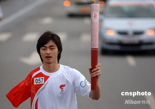 6月10日,奧運圣火在云南麗江傳遞,57號火炬手殘疾運動員王曉福傳遞火炬。中新社發 廖攀 攝