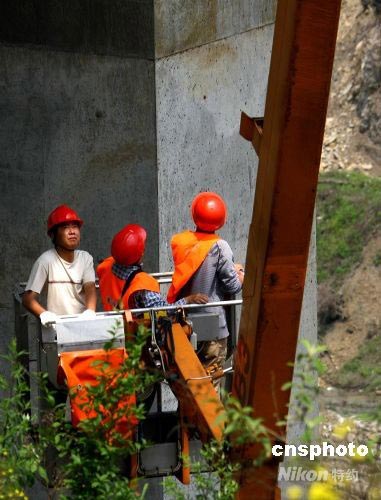 勘測人員查看四川震區橋梁受損情況