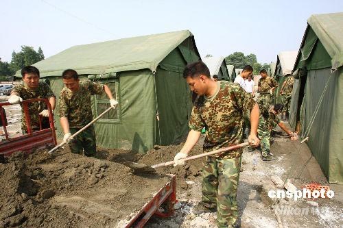 圖:解放軍官兵四川震區(qū)的帳篷生活(2)
