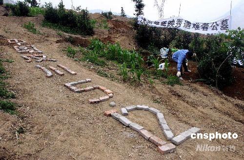 6月10日,在四川大地震重災區(qū)映秀鎮(zhèn)附近的山坡上,一座“汶川地震映秀遇難者公墓”正在建設當中。