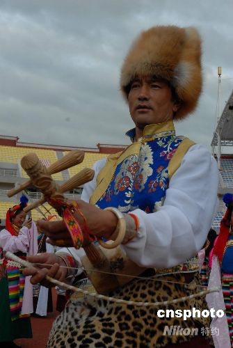 圖為當地藏族民眾歡迎圣火來到香格里拉。 中新社發(fā) 石雨 攝
