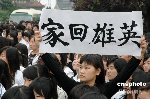 群眾舉起字幅迎接烈士英靈歸來。中新社發 劉明 攝