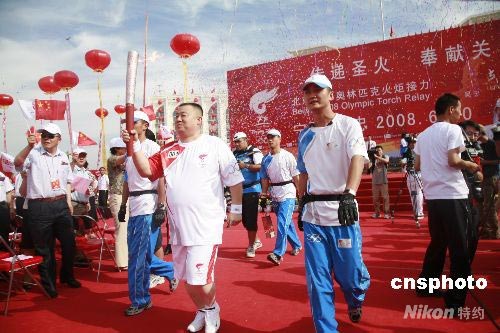 擔任吳忠第一棒奧運火炬手是企業家霍慶華,在5.12汶川大地震中,霍慶華向災區捐款500萬人民幣,是寧夏個人捐助最多者。中新社發 蘆河 攝