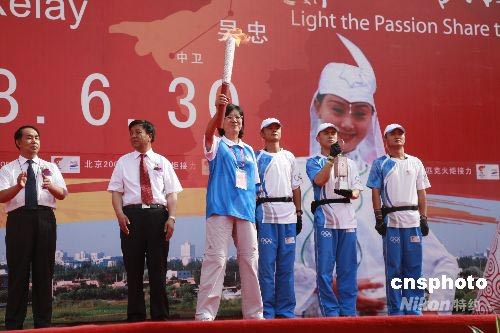 6月30日,奧運火炬在寧夏吳忠傳遞。中新社發 蘆河 攝