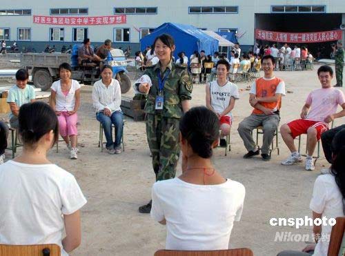 四川大地震災區高考將于7月3日、4日舉行,青川中學、秀水中學等考生臨行前接受解放軍石家莊白求恩軍醫大學心理支援隊輔導,官兵們采取多種形式的心理健康支援,以使這些“特殊”考生在考場上得到正常發揮,取得好成績。中新社發 尹威華 攝