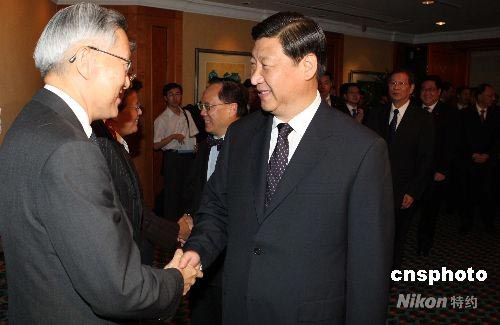 7月7日,首次訪問香港的中國國家副主席習近平在海逸酒店會見香港特區行政、立法、司法機關負責人。中新社發 任海霞 攝