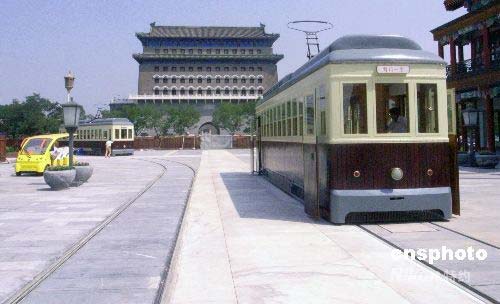 7月21日,當(dāng)當(dāng)車行駛于改造后的北京前門(mén)大街。據(jù)有關(guān)方面稱,前門(mén)大街有望在奧運(yùn)會(huì)前的8月1日開(kāi)放。這條街是北京中軸線最重要核心地段,從前門(mén)月亮灣南至珠市口全長(zhǎng)840米,2007年5月動(dòng)工,參照上世紀(jì)二三十年代老前門(mén)的樣子進(jìn)行。當(dāng)當(dāng)車長(zhǎng)12米,寬2.3米,高3.7米,能夠乘坐84人,單程運(yùn)行需時(shí)約10分鐘,不過(guò)其運(yùn)行能源不再是靠來(lái)自頂上的天線,而是本身攜帶的新能源。中新社發(fā)