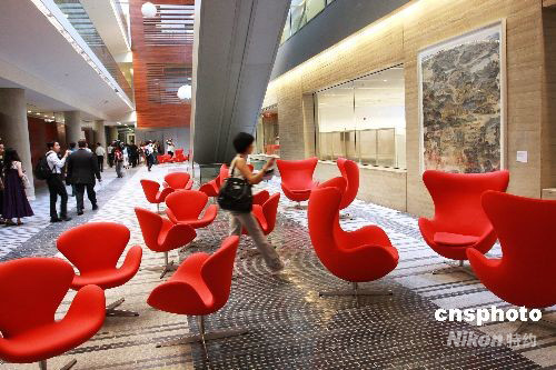 圖為中外記者正在參觀新館內景。中新社發 鄭雄增 攝