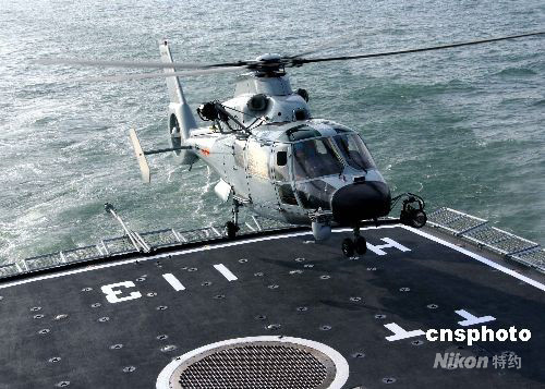 9月下旬,海軍某艦載機(jī)部隊(duì)載直升機(jī)進(jìn)行著艦訓(xùn)練。中新社發(fā) 鄢潤波 攝