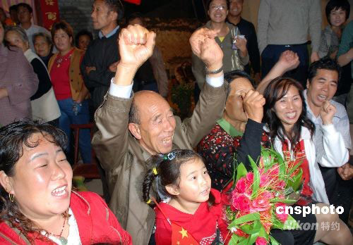 9月25日晚,在航天員景海鵬的家鄉,家人和鄰居們在景家觀看電視直播!俺晒α耍〕晒α!我們為你自豪!”小小的院子頓時沸騰了,鑼鼓聲、鞭炮聲、歡呼聲響徹夜空。一直下個不停的小雨也沒能阻擋家鄉人民的熱情。