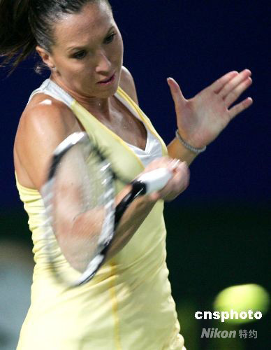 9月26日,在2008中國網(wǎng)球公開賽女子單打四分之一決賽中,塞爾維亞選手揚科維奇以2比0戰(zhàn)勝斯洛伐克選手漢圖楚娃,晉級四強。中新社發(fā) 富田 攝
