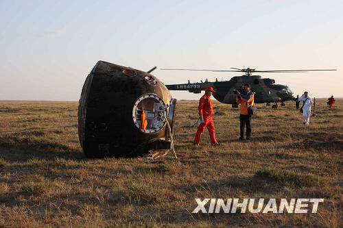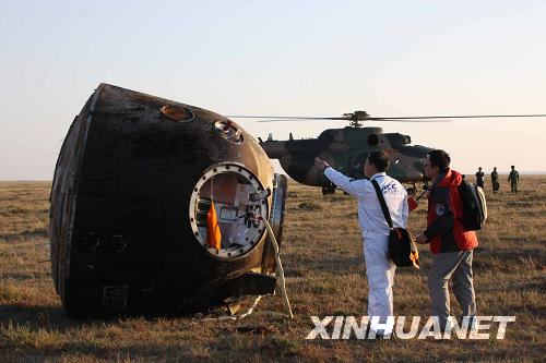 9月28日,飛船返回艙成功著陸。新華社記者王建民攝