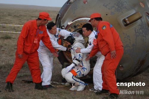 組圖:神七返回艙著陸航天員出艙經典瞬間回眸
