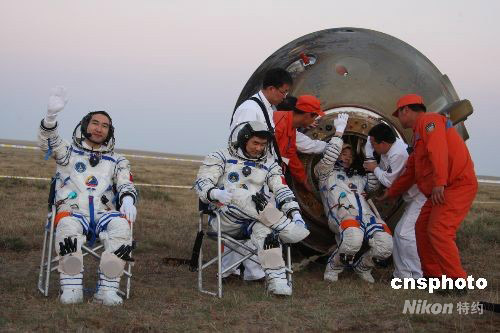 組圖:神七返回艙著陸航天員出艙經典瞬間回眸(2)