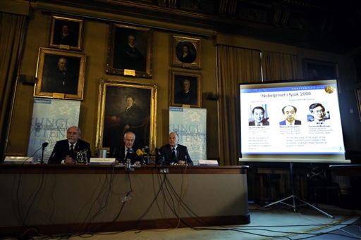 瑞典皇家科學(xué)院諾貝爾獎委員會10月7日宣布,將2008年度諾貝爾物理學(xué)獎授予美國籍科學(xué)家南部陽一郎(Yoichiro Nambu),以及日本科學(xué)家小林誠(Makoto Kobayashi)和益川敏英(Toshihide Maskawa)。他們都在基本粒子夸克的研究上有突出成就。