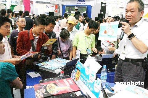 2008年10月16日,在蘇州國際博覽中心開幕的以“綠色科技、數字生活”為主題的第七屆中國蘇州電子信息博覽會上,許多參展企業豐富多彩的促銷活動,引人入勝,成為該展會上的一大亮點。 中新社發 蘇秀 攝