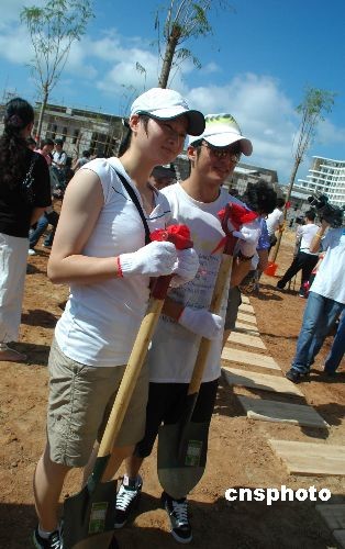 10月21日,參加“三亞城市精神評(píng)選暨奧運(yùn)冠軍三亞行活動(dòng)”的14位奧運(yùn)會(huì)冠軍在三亞灣種下“冠軍林”。本次來(lái)三亞的主要是拳擊、跆拳道、舉重等力量型項(xiàng)目的奧運(yùn)冠軍,包括張小平、鄒市明、陸永、陳?ài)葡嫉燃跋つ帷⒀诺鋬蓪们皧W運(yùn)會(huì)冠軍陳中等。中新社發(fā) 尹海明 攝