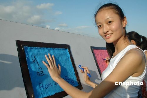 圖為來自中國(guó)安徽的選手劉旭在印制手模。中新社發(fā) 尹海明 攝
