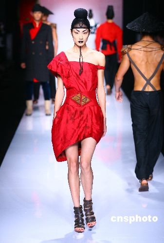 2008年10月30日,模特在2008上海時(shí)裝周國際品牌發(fā)布會(huì)上表演。本季設(shè)計(jì)師最新秋冬作品靈感來自于中國象棋。中新社發(fā) 睿瀛 攝