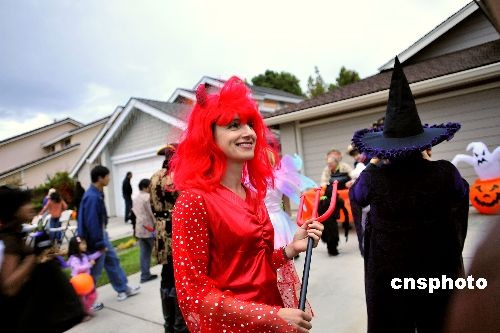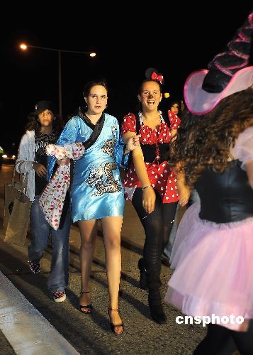 美西福斯特市的人們服裝艷麗歡度“萬圣節”。
