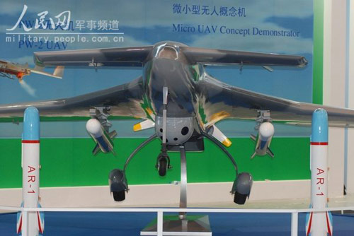 中國航天科技集團公司將在第七屆中國航展上首次公開展出無人攻擊機——CH-3。這也是國產無人攻擊機首次公開亮相。圖為人民網記者11月1日在航展2號館內拍攝的CH-3型無人攻擊機。