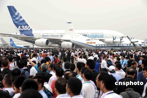11月4日,第七屆中國(guó)國(guó)際航空航天博覽會(huì)在珠海開(kāi)幕,殲十、獵鷹、空客A380、印度空軍“陽(yáng)光”特技飛行表演隊(duì)等在珠海航展上飛行表演。圖為數(shù)萬(wàn)海內(nèi)外觀眾蒞臨珠海航展。中新社發(fā) 陳文 攝