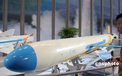 圖為由中國(guó)航天科工集團(tuán)公司研制的C602導(dǎo)彈首次亮相珠海航展,也是該型導(dǎo)彈第一次公開(kāi)露面。C602是新型遠(yuǎn)程反艦導(dǎo)彈,具有射程遠(yuǎn)、命中精度高、突防能力強(qiáng)、毀傷威力大、使用靈活、生存能力強(qiáng)等特點(diǎn),可裝載于機(jī)動(dòng)車輛或水面艦船。中新社發(fā) 孫自法 攝