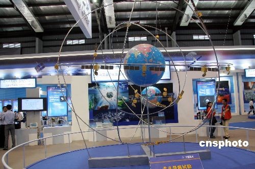 圖為北斗導航試驗衛星定位系統在中國航天科技集團公司展區展出。中新社發 孫自法 攝