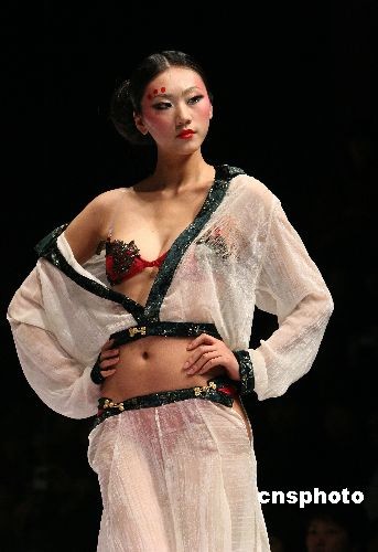2008年11月5日,中國國際時(shí)裝周(2009春夏系列發(fā)布)開幕式——2008中華內(nèi)衣元素創(chuàng)新設(shè)計(jì)大賽在北京舉行。 本次大賽共收到全國27個(gè)地區(qū)(包括港澳臺(tái))和英國、日本的872組參賽作品,經(jīng)過評(píng)委的認(rèn)真評(píng)選,來自中國內(nèi)地、中國臺(tái)灣、英國和日本的24組參賽作品入圍。來自不同國家和地區(qū)的選手們從各個(gè)角度對(duì)漢代文化進(jìn)行各自的詮釋,將漢代文化的多元與繁榮表現(xiàn)地淋漓盡致。中新社發(fā) 魯谷 攝