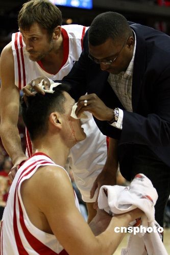 當地時間26日晚,回到主場作戰的火箭隊一分之差被對手逆轉,以90-91遺憾地敗給步行者。姚明首節右眉骨受傷,不過還是堅持出戰,拿下了19分10個籃板。中新社發 歐文 攝