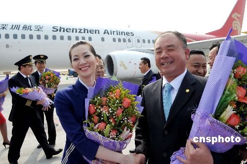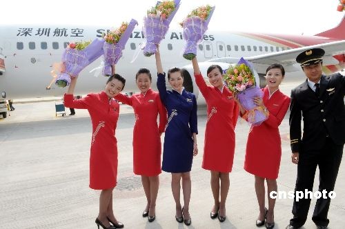 12月15日,深航首飛深圳至臺北常態包機直航任務,往返臺北的臺籍旅客大加稱贊深航空姐的優質服務。