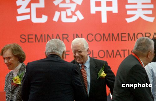 美國前總統卡特夫婦出席中美建交30周年研討會。
